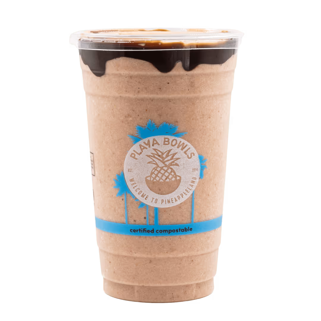 Strawberry, chocolate protein, chocolate drizzle & coconut milk