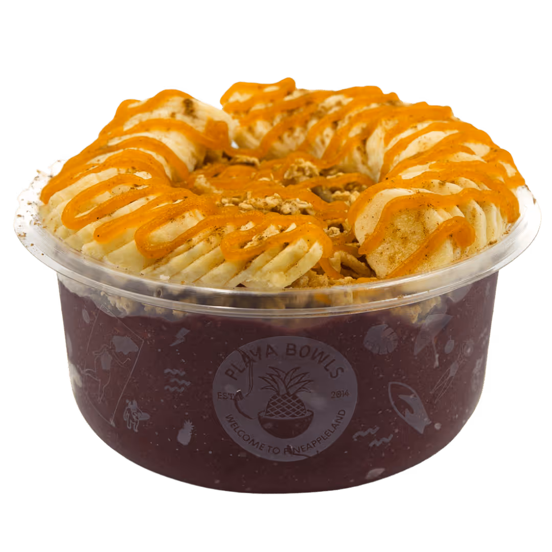 Playa Acai base topped with pumpkin flax granola, banana, pumpkin butter & pumpkin spice