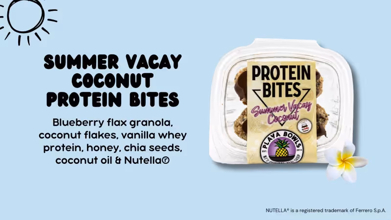 Summer Vacay Coconut Protein Bites 🏄 Fuel your summer adventures with these bite-sized coconut snacks. Packed with flavor, protein, and good vibes—perfect for beach days, road trips, and everything in between.